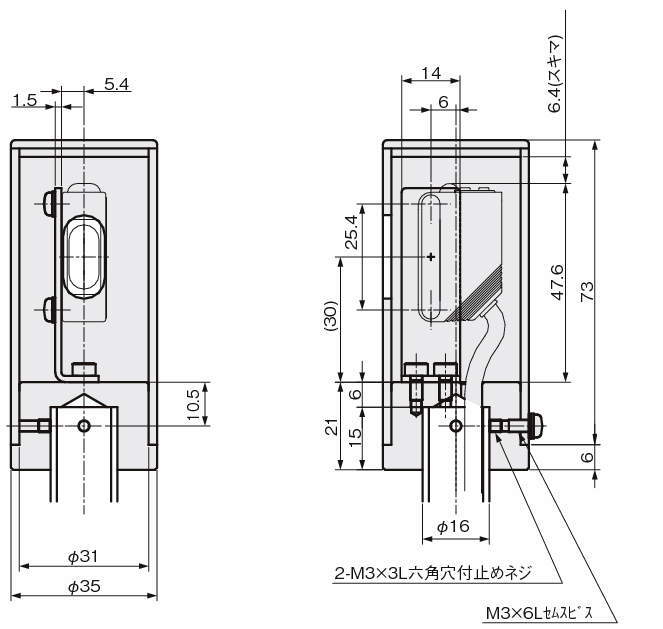付属品 六角穴付ボルト(SUSXM7)M3×6L 2本