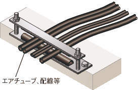 ・ラバー部によるクランプ構造で、エアチューブをつぶさずに様々なサイズを簡単固定。