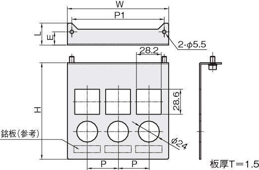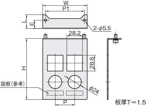 | 型式 | タイプ | W | H | L | P | P1 | E |