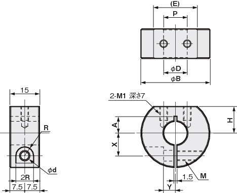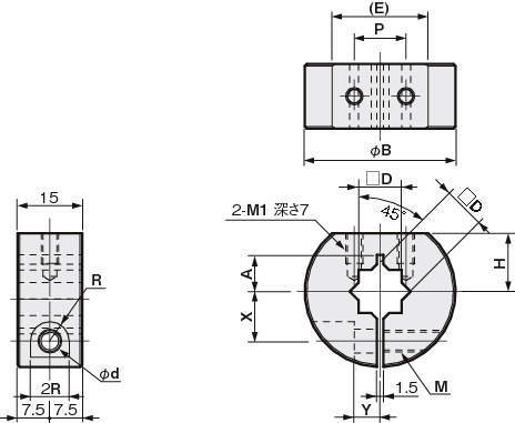 FSFMARM03-14A 丸シャフト用 アルミ(A2017) - M3-8P φ14 M3 8 35 5.5 4.5 11.5 6 M5 10 13.5 22.3 31