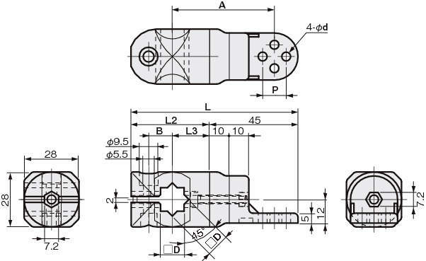 | φd×P | A | L | L2 | L3 | B | ||||
