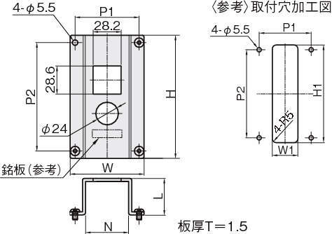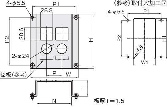 | 型式 | タイプ | W | H | L | N | P | P1 | P2 | W1 | H1 |