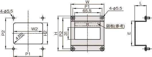 | 型式 | タイプ | W | H | L | E | P1 | P2 | W2 | H2 |