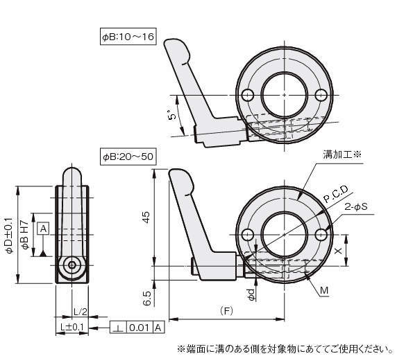 | クランプレバー材質(ネジ部) | SCK-CP2:黒染め(SUM22L) SCK-SP2:SUS303 |