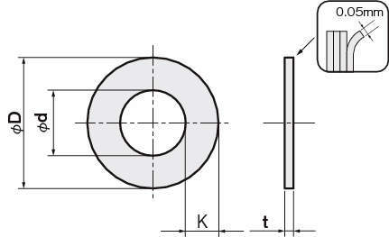 | RS5016022100 | ステンレス | 636・608・6900 | 16 | 22 | 1.0 | ±0.1 | 5枚 |