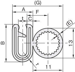| TSFB640A | TSFB640A (定尺) | 6.4 | 5.5~6.4 | 50 | 耐油TPE | アルミ(A5052) | 黒 |