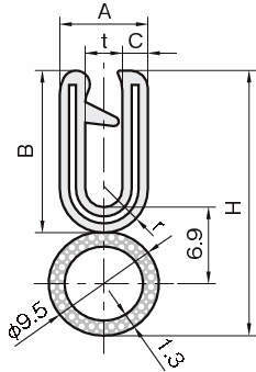 | 3100-B-3-64CT | 3100-64CT (定尺) | 6.4 | 5.5~6.4 | 10.8 | 12.7 | 2.2 | 22.1 | 6.4 | 3.6 | 15 | TPE | アルミ(A5052) | EPDMスポンジラバー | 黒 | 3 |