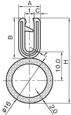 | 6100-B-3-16CT | 6100-16CT (定尺) | 1.6 | 1.2~2.4 | 6.0 | 14.5 | 2.2 | 30.2 | 1.6 | 3 | 15 | TPE | アルミ(A5052) | EPDMスポンジラバー | 黒 | 3 |