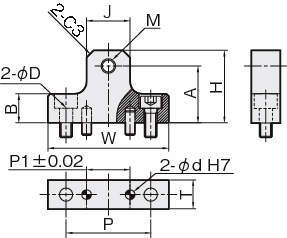| LSCN-02N | 鉄(SS400)/黒染め | 15 | LWH15 | LS15AL | HSR15A | 50 | 38 | 31.5 | 12 | 18 | 35 | 18 | 12 | M6×P0.75 | 5.5 | 4×6 | M5×16 | 4×10 |