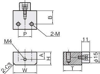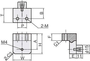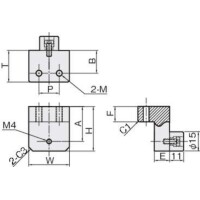 | 型式 | 材質/表面処理 | 対応サイズ | 対応シリーズ | 形状 | W | H | A | B | E | F | P | T | M | ||