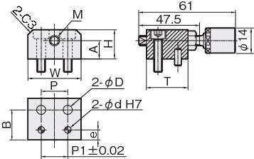 型式 材質/表面処理 対応サイズ 対応シリーズ 形状 W H A B E F P P1 e T M