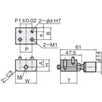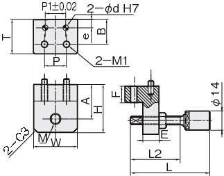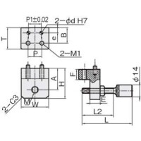 | 型式 | 材質/表面処理 | 対応サイズ | 対応シリーズ | 形状 | W | H | A | B | E | F | P | P1 | e | T |