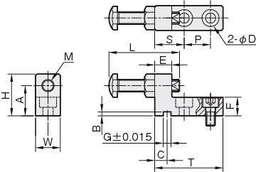 | LSPN-03-RH | 鉄(S25C)/黒染め | 16 | 27 | 19.5 | 2.5 | 11 | 12 | 5 | 8 | 19 | 17 | 44 | M8×P1.0 | 6.6 | M6×12 | 45.5 |
