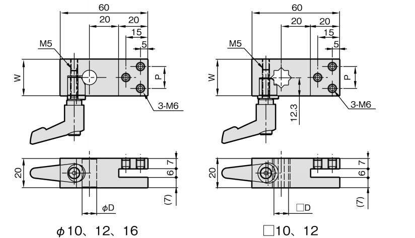 | 付属品 | 六角穴付止めネジ(SUSXM7)M6 3本 クサビ(SUS304) 1個 クランプレバー(ネジ部:SUS303、レバー部:亜鉛ダイカスト/粉体塗装) 1本 |