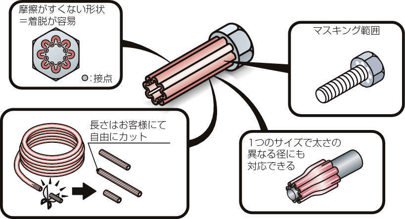 ・摩擦抵抗が少ないため簡単に着脱できます。