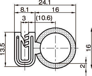 | TSLB240A | TSLB240A (定尺) | 2.4 | 1.5~2.5 | 75 | EPDM | アルミワイヤーキャリア | EPDMスポンジ | 黒 |