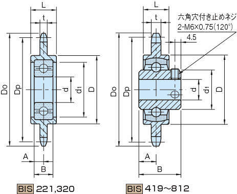 歯数 | Do | Dp | d | B | D | L | t | d1 | A |
