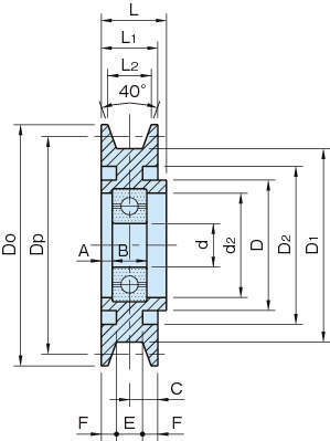 Dp | Do | d | B | D | L | D1 | D2 | d2 | L1 | L2 | A | C | E | F |
