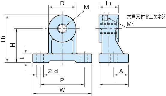 | 型式 | M | W | H | H1 | t | L | d | P | A | D | L1 | M1 |