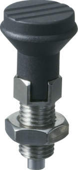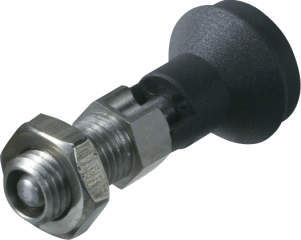 ・ノブを引くとノーズが引っ込み位置決め解除が簡単にでき、手を放すとノーズは内蔵スプリングによって元の状態に戻る、ハンド操作のスプリングプランジャーです。
