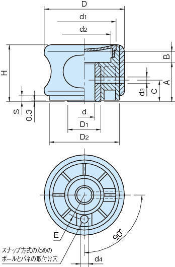 ・別売品のボール&バネ<CLB>を取付けてスナップ方式でご利用になれます。