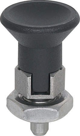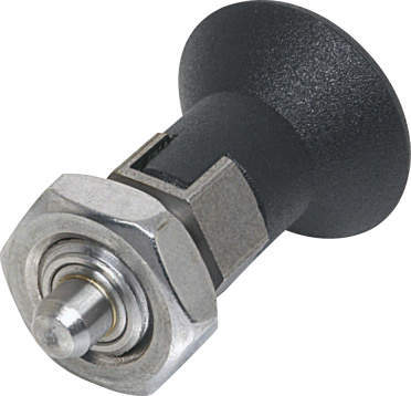 ・ノブを引くとノーズが引っ込み位置決め解除が簡単にでき、手を放すとノーズは内蔵スプリングによって元の状態に戻る、ハンド操作のスプリングプランジャーです。