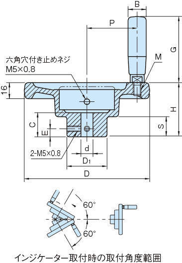 | ハンドル車 | アルミ合金(ADC12) 焼付塗装 シルバーグレー |