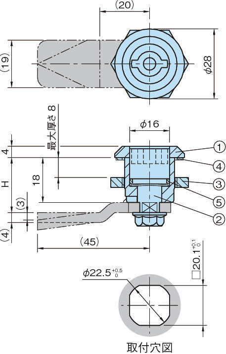 | (3)ナット | SUM22L 亜鉛メッキ (φ28×4mm) |