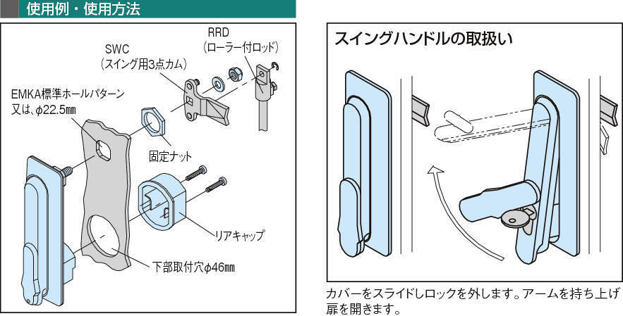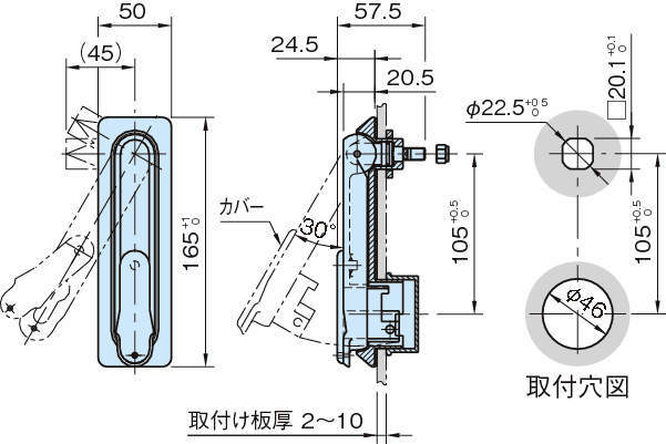 ・スイング用3点ラッチ使用の場合、取付板厚は2mmです。