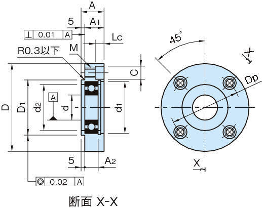 | BRRN3010 | 6200ZZ | 10 | 55 | 36 | 17 | 12 | M5×0.8(下穴4.3) | 8 | 4.4 | 44 | 30 | 24 | 9 | 230 |