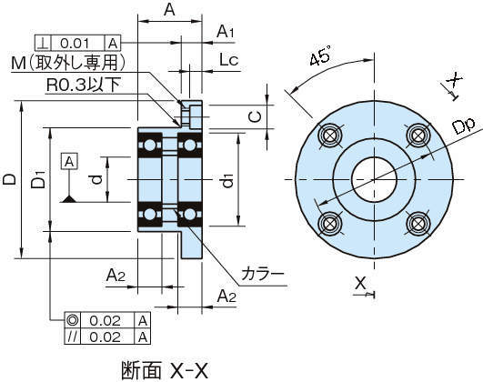 | BRWN3212 | 6201ZZ | 12 | 60 | 38 | 30 | 8 | M5×0.8(下穴4.3) | 8 | 4.4 | 46 | 32 | 10 | 300 |