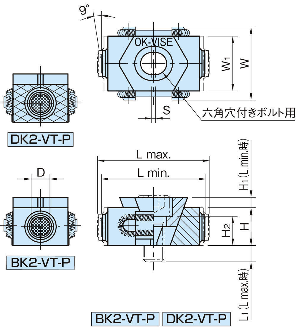 ・V型クサビは、クサビの倍力作用により、六角レンチによる締付けのみで、強いクランプ力を容易に得ることができます。