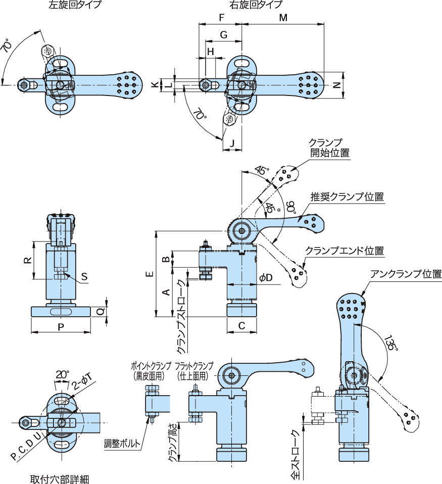 ・ワンタッチクランプは、工具を必要としない、レバー操作でクランプ・アンクランプが可能なクランプです。