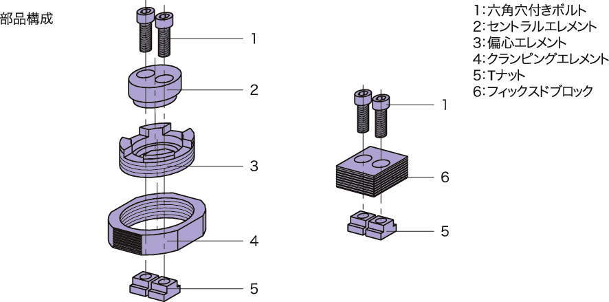 カムブロック フィックスドブロック クランピングレバー Tナットセット