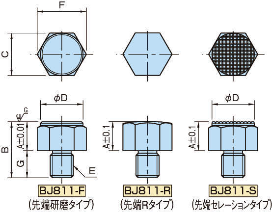 | BJ811-12010-F | 先端研磨タイプ | 10 | 24 | 22 | 22 | M12×1.75 | 25.2 | 14 | 40 |