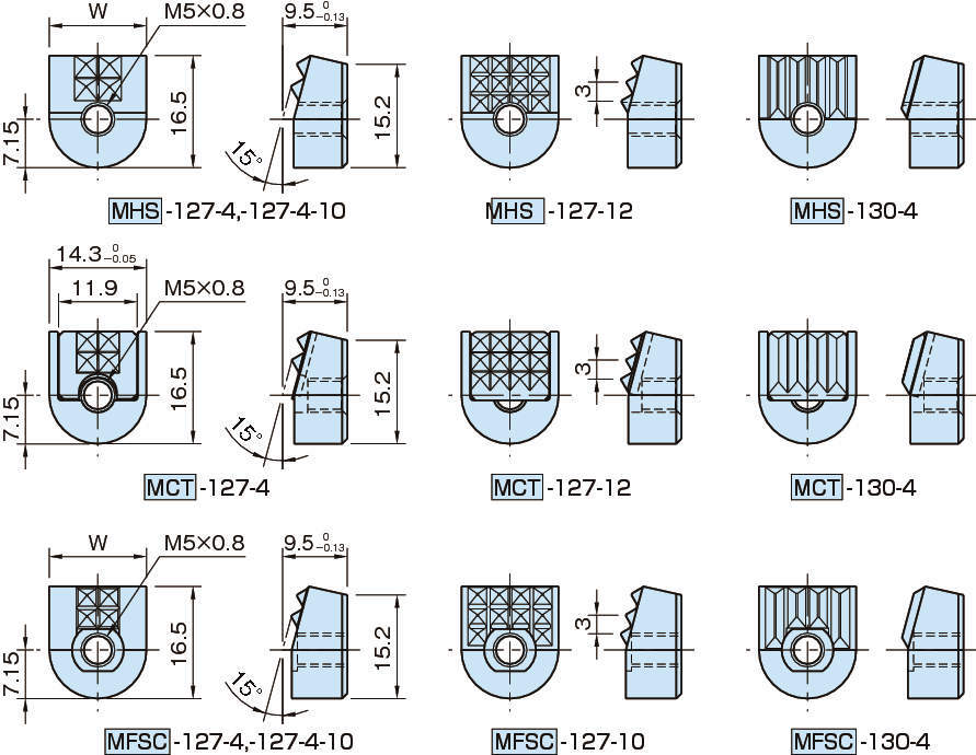 | 本体 | MHS、MCT:SKH51 焼入焼戻 黒染め HRC62 MFSC:超硬 HRC72 |