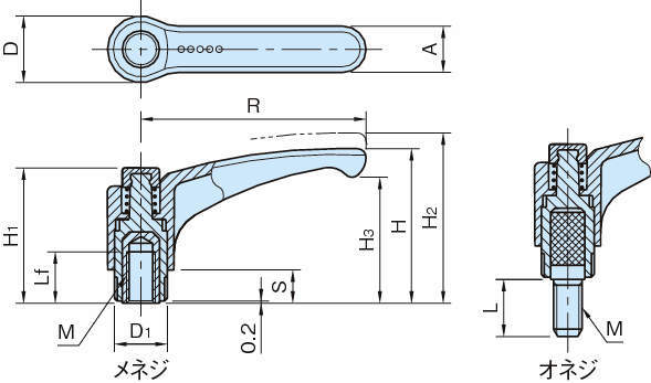型式 ネジ材質 歯数 R H D H1 H2 M D1 H3 A S L 質量