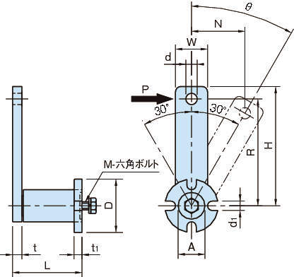 | 型式 | d | R | L | H | W | t | t1 | D | M | d1 | A |