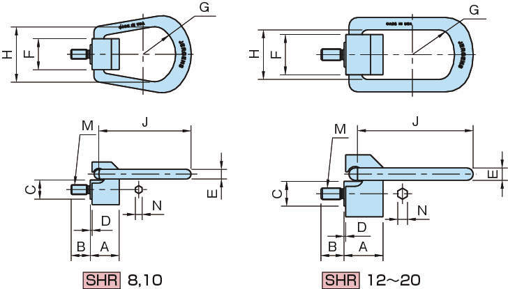 | SHR8 | 23.8 | 15.8 | 15.8 | 1.6 | 7.9 | 25.4 | 25.4 | 44.5 | 75.4 | M8×1.25 | 6 | 2900 | 0.27 |