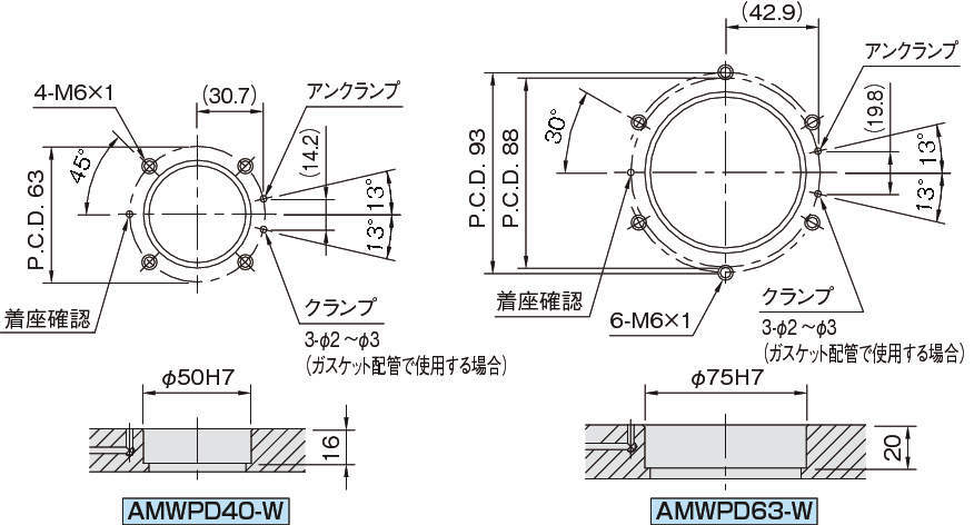 ・着座確認用エア穴を設けていますので、着座確認スイッチを利用してワークの着座確認を行うことができます。