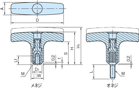 | 型式 | タイプ | 歯数 | D | H | H1 | A | W | S | M | L | Lf | D1 |