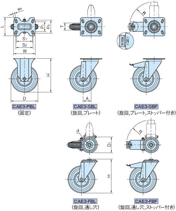 | CAE3-150SBL | 旋回、プレート | 150 | 40 | 182 | 9 | 75 | 45 | 80 | 60 | 100 | 85 | - | - | 37 | - | 1700 | 1400 |