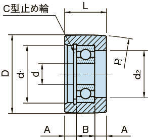型式 d D d1 d2 L A B R ベアリング