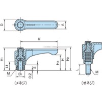 | 型式 | タイプ | 材質 | R | M | H | D | H1 | H2 | D1 | H3 | A | S | 歯数 | Lf | L |