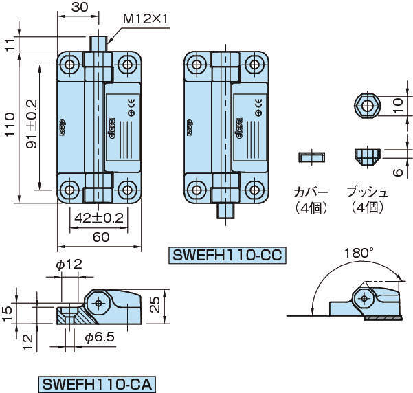 ・ヒンジとスイッチ機能が一体のため、組付けが簡単です。