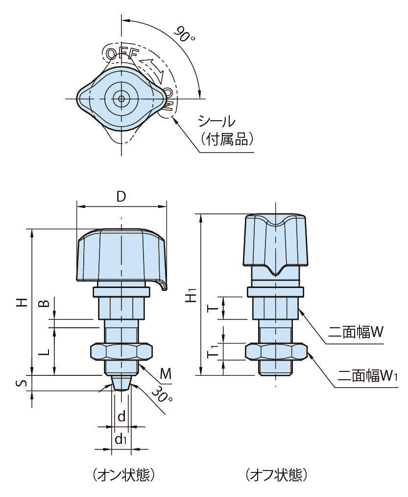 ・ON−OFFのノブ位置を任意に定めたい場合はQCIC-Fインデックスクランパー(フランジタイプ)をご使用ください。