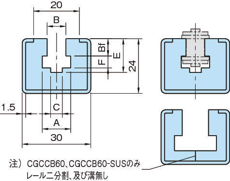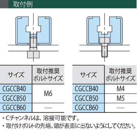 | Cチャンネル | CGCCCB:スチール(SGHC) 亜鉛メッキ CGCCB-SUS:SUS304 |