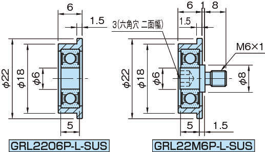 ・GRL2206P-L-SUSのローラーピンはお客様にてご用意ください。