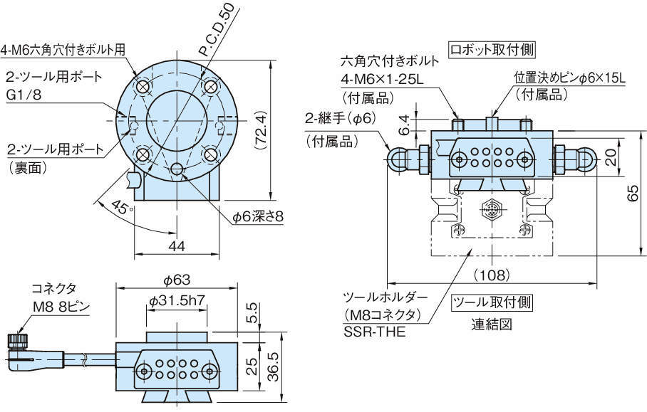 ・ロボット側アームの先端取付規格:ISO9409-1-50-4-M6相当