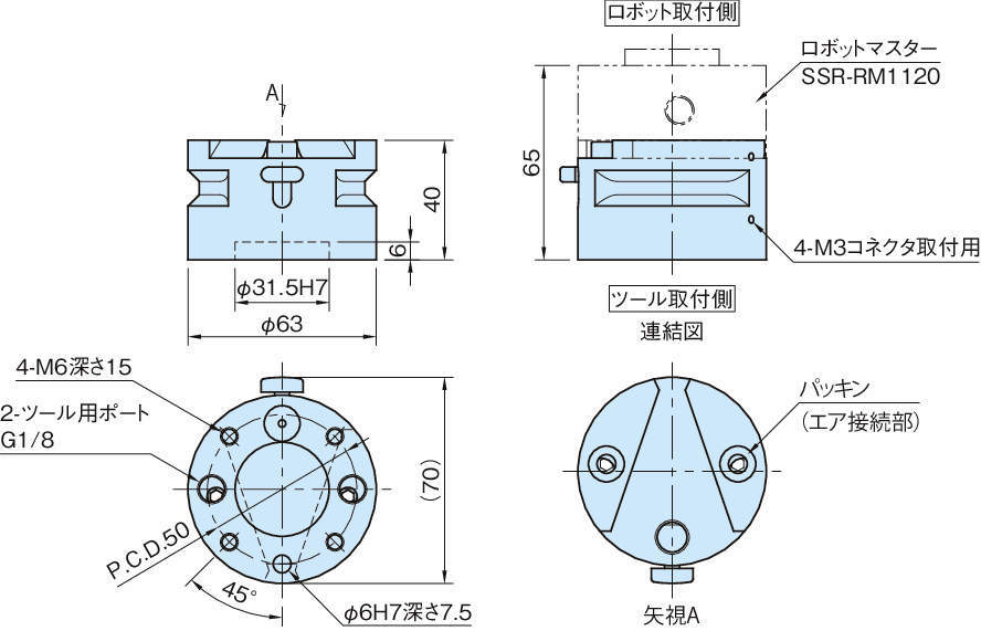 ・ロボット側アームの先端取付規格:ISO9409-1-50-4-M6相当